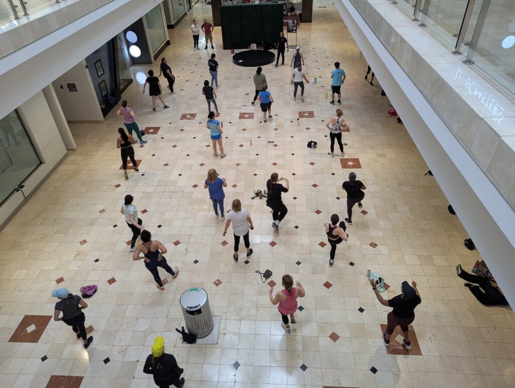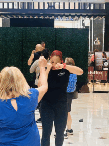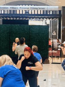 And that’s what happened at the Westfield Montgomery Mall Shopping is my Cardio event. Fight into Fitness (FIF) was the first fitness session for the summer/fall series. The mall sponsors free fitness classes from local gyms in the area for the community to participate during the year.